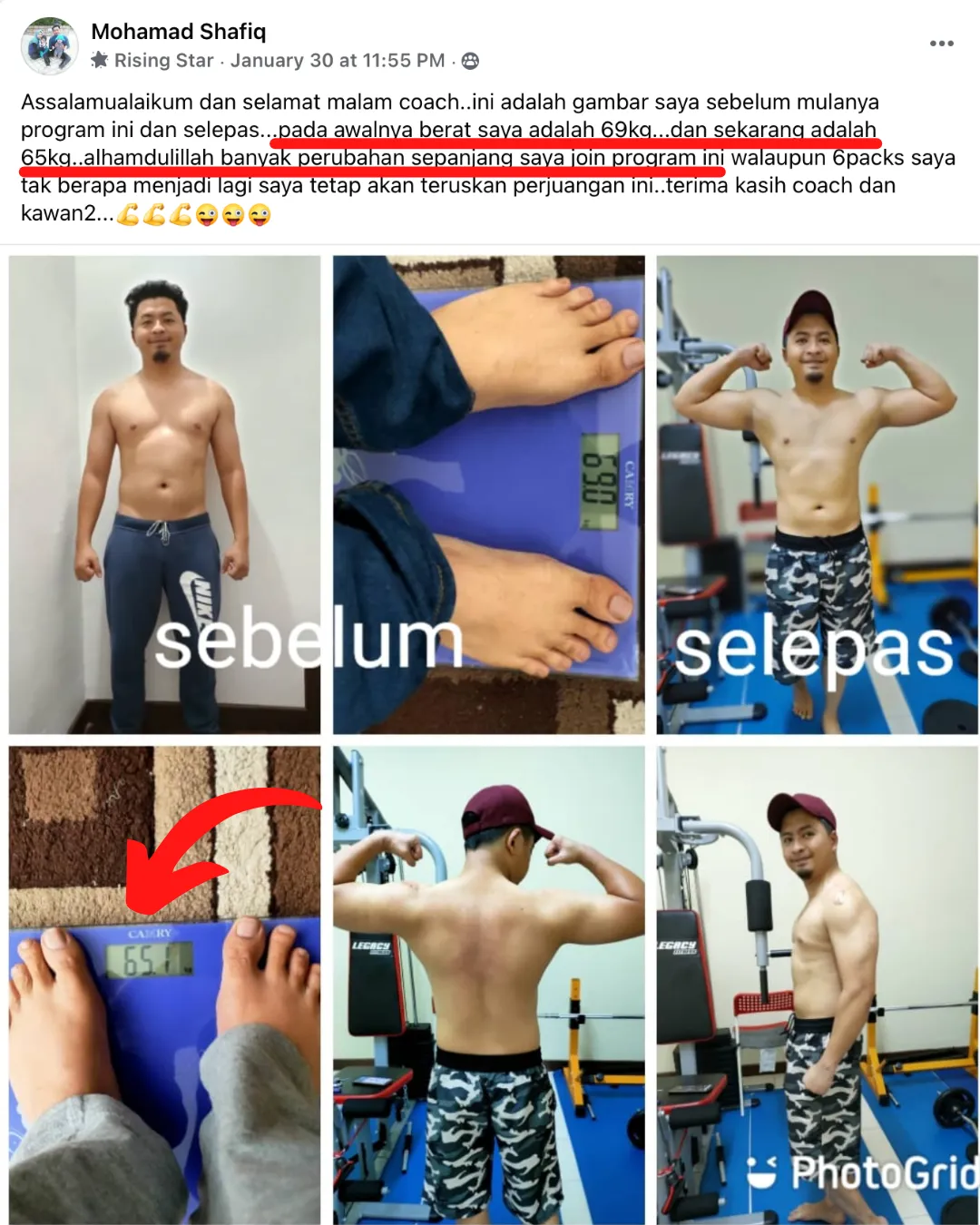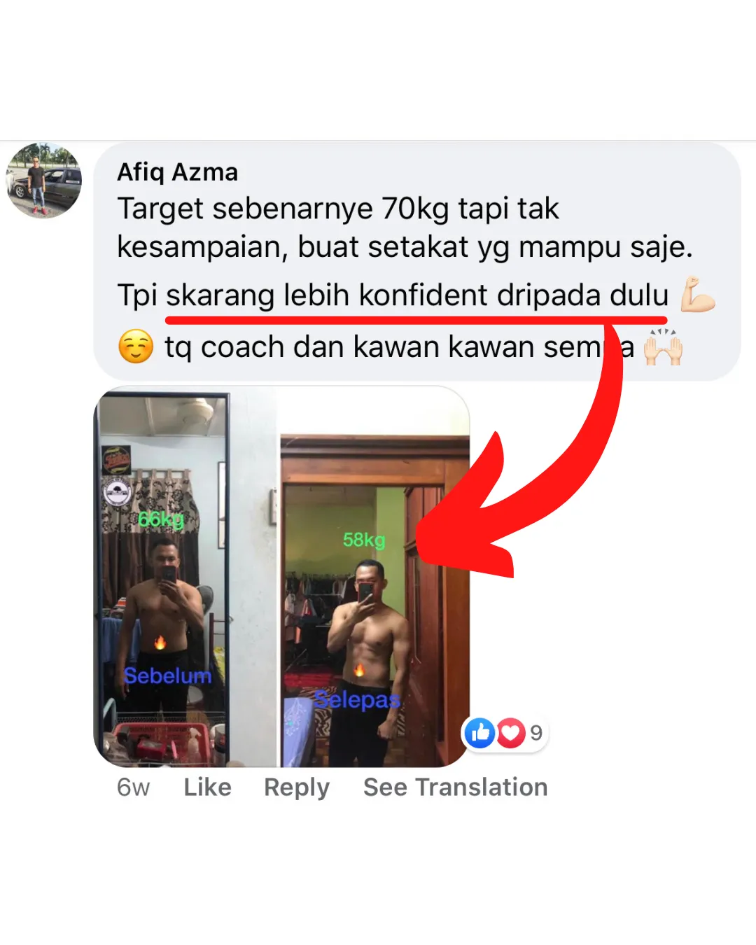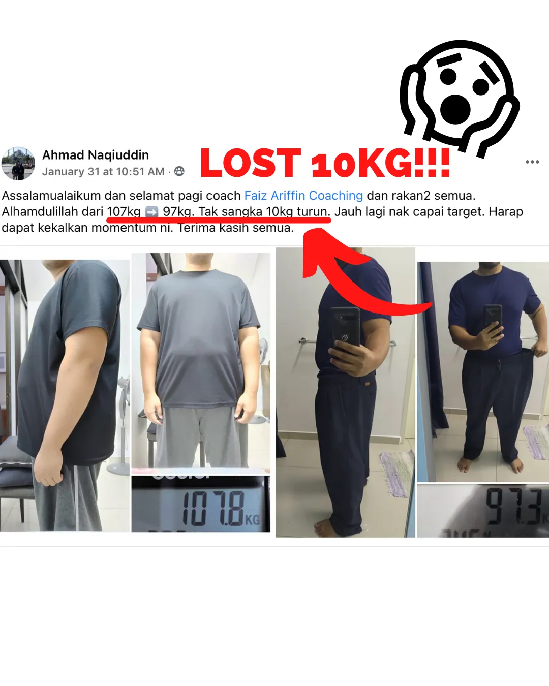 👉 Dalam program ini, anda mengikuti Blueprint Coach Faiz Ariffin — sistem latihan, nutrisi dan progres yang telah terbukti berkesan.